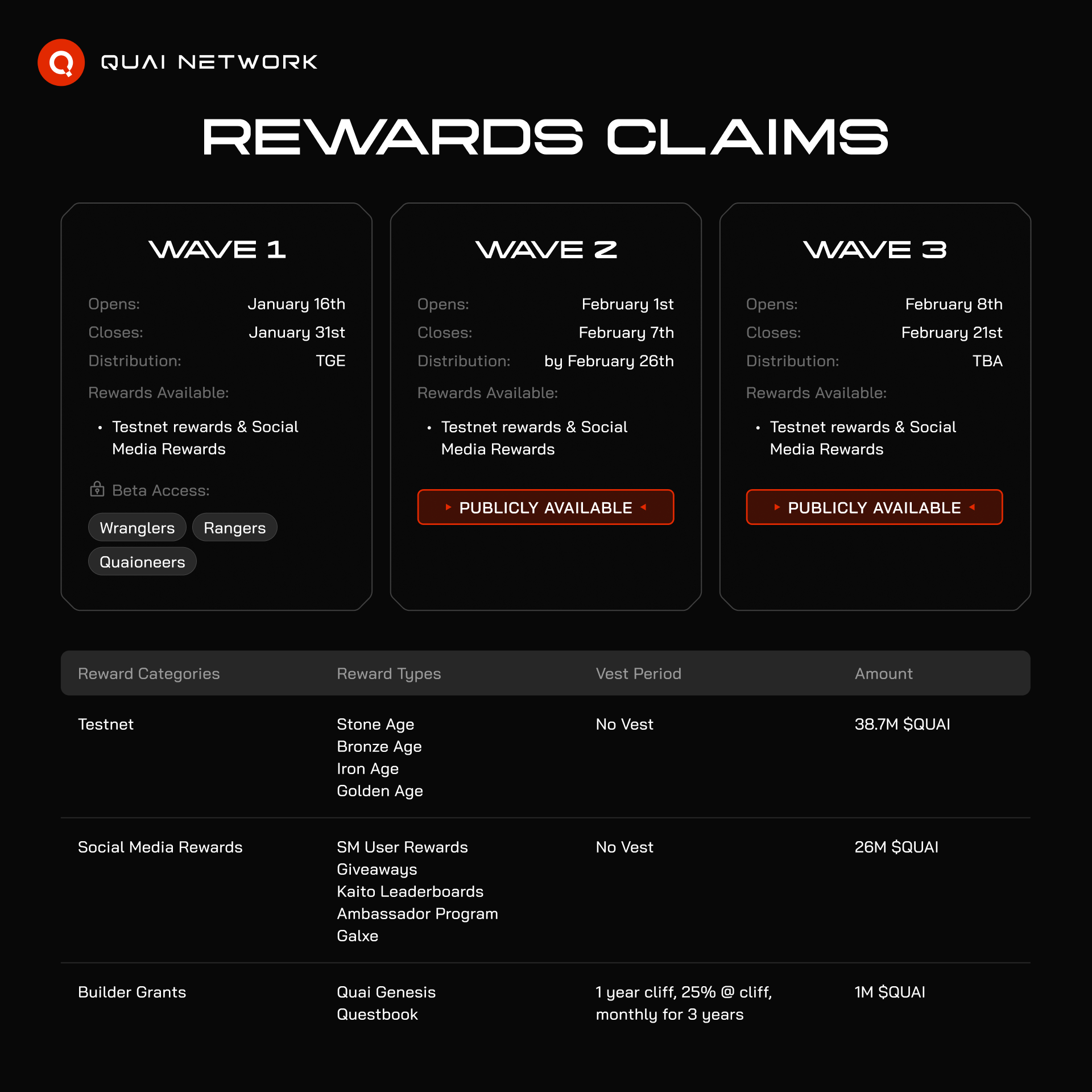 - Quaioneer Rewards: 1,000 $QUAI