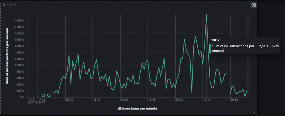 The first throughput testing of PoEM occurred on April 13, 2023. Within this short ~2 hour test, Quai Network’s peak processing throughput was pinpointed at 2,591 TPS.