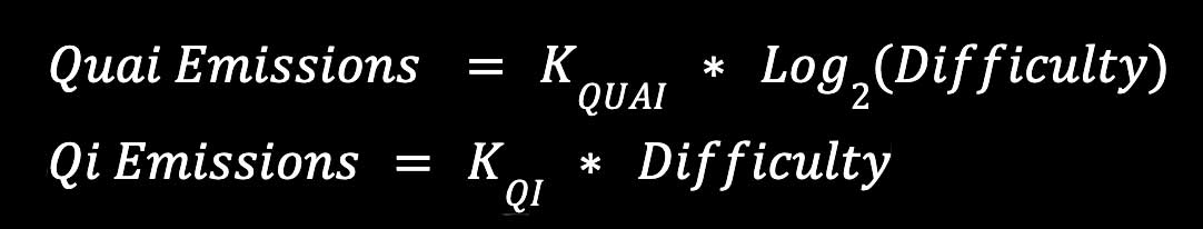 As you can see, the difficulty went from a peak of ~415 billion to ~344 billion. Following the strategy above you can calculate the relative emissions factor for Quai and Qi with the formulas below: